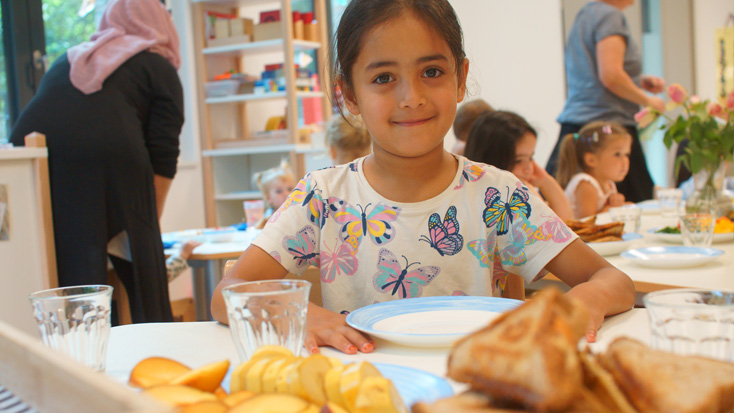 Für unser gemeinsames Frühstück bringt jedes Kind seine eigene, gesunde Brotzeit mit. Unser Mittagsmenu finden Sie hier. Nachmittags findet eine gemeinsame Brotzeit statt, die ebenfalls von den Eltern mitgebracht wird.