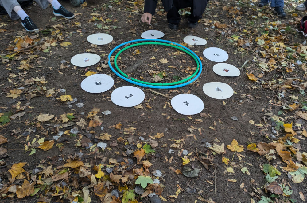 Angela Schmidt aus dem Team der Umweltstation begleitete die Schüler:innen dann auf einen Spaziergang. Dabei gab es immer wieder Stopps mit Teamspieleinheiten: eine hervorragende Gelegenheit, um auch den Klassenverbund noch einmal zu stärken. So durften die Kinder zusammen einen Waldcode knacken, einen Flaschengeist bändigen und einen Zaubertrank für die Lehrerinnen retten.