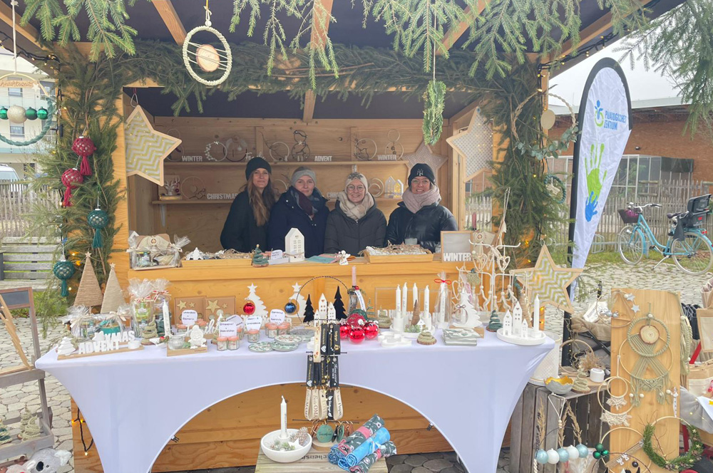 Auch das Pädagogische Zentrum hat einen Stand und freut sich auf viele Besucher! Bei uns gibt es verschiedene beplottete Dinge wie Taschen, Christbaumkugeln oder auch Gutscheinboxen. Besonders hübsch für die Adventszeit sind auch die aus Gips gegossenen Deko-Artikel. Wer möchte, kauft Weihnachtskarten, die die Kinder der Kleinen Heimat selbst gestaltet haben oder auch Makramee-Reifen, die am 8. Dezember sogar mit Personalisierungen versehen werden.