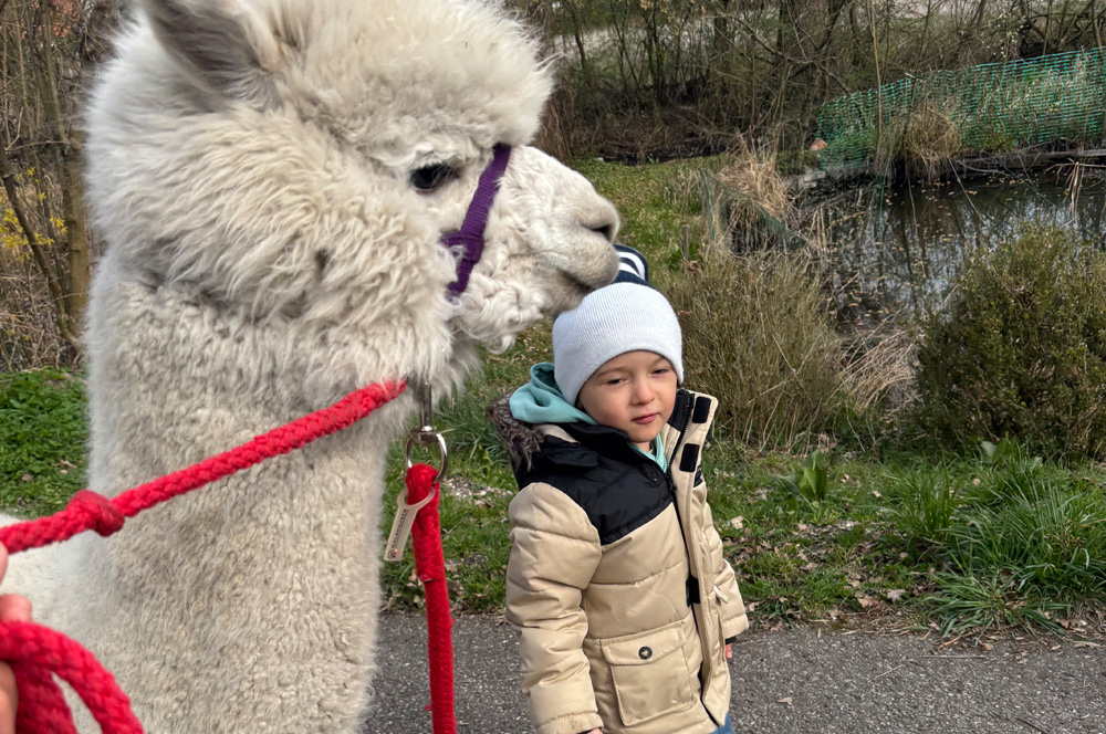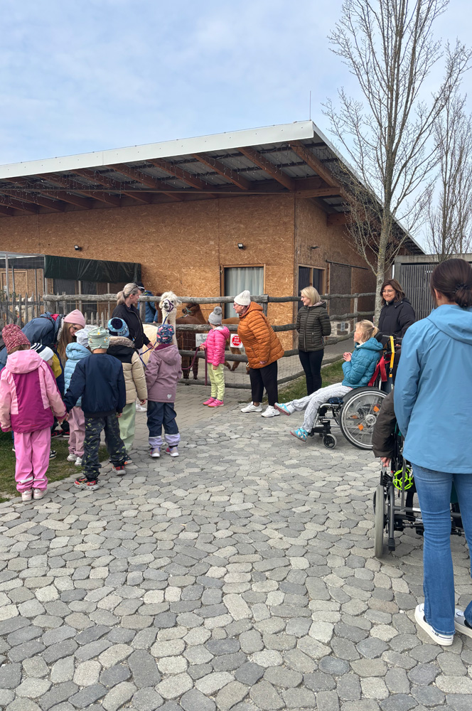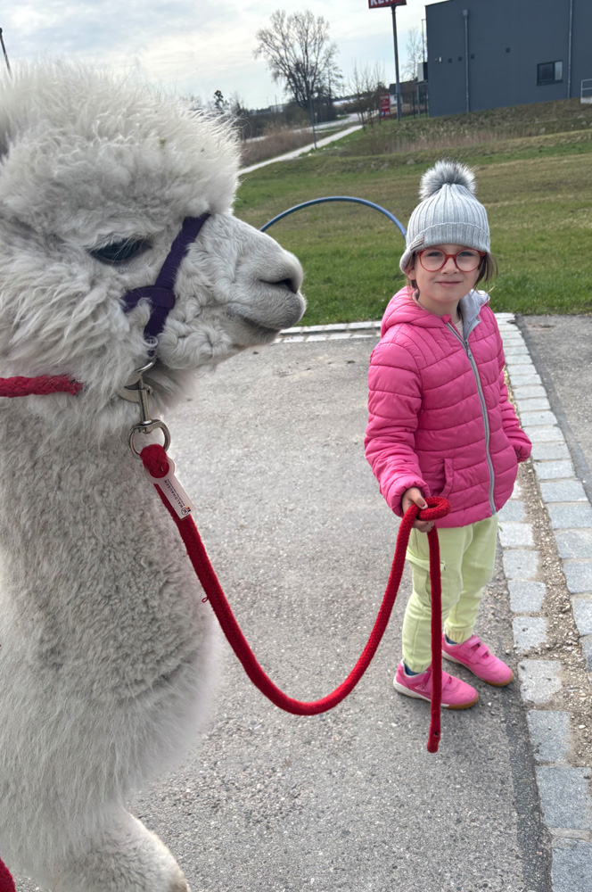 Die Kinder waren natürlich begeistert davon, die Alpakas selbst zu führen und genossen die Nähe zu den Tieren in vollen Zügen. In der tiergestützten Pädagogik kann der Kontakt mit Alpakas beispielsweise das Selbstvertrauen stärken, die Empathie fördern und zur Entspannung beitragen. Solche Begegnungen schaffen wertvolle Momente der Freude und des Lernens für alle Beteiligten.