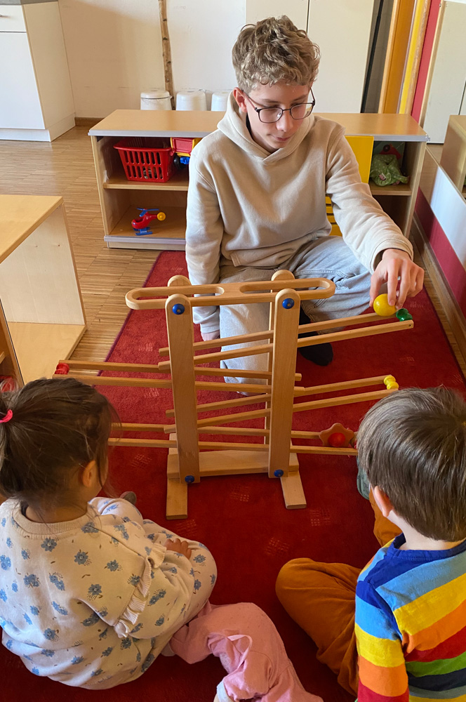 "Ich habe schon ein Praktikum beim Bäcker und im Verkauf gemacht. Aber das war beides nichts für mich. Jetzt interessiert mich der soziale Bereich", berichtet Jonas, der normalerweise zur Montessorischule Kösching geht. Heute verpasst er dort den Englisch- und Sportunterricht. "Aber das ist nicht so schlimm!", findet er. Heute hat er nämlich eine andere Mission: Er schnuppert in den Beruf des Erziehers.
