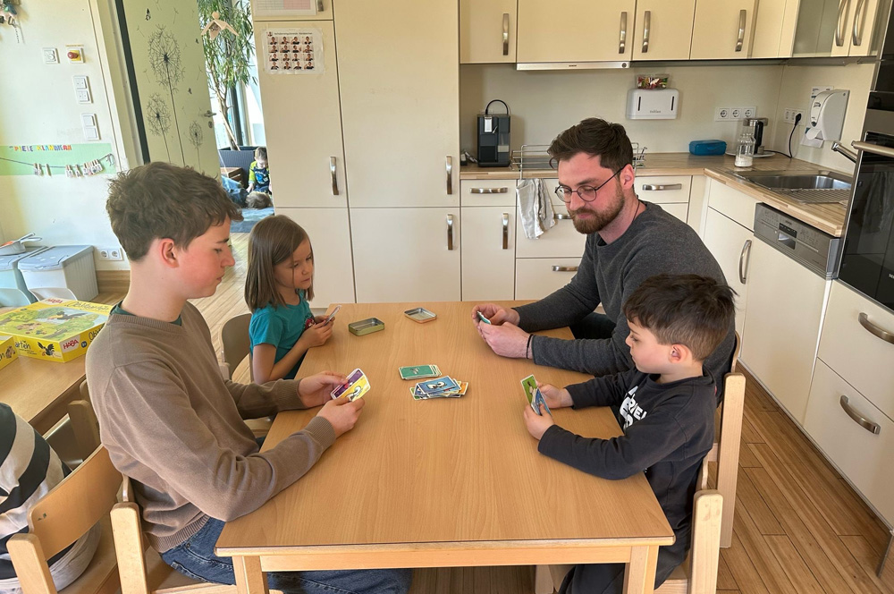 In der Gruppe der Heilpädagogischen Tagesstätte Kleine Heimat in Münchsmünster wird er mit offenen Armen empfangen und gleich eingebunden. Es wird gebastelt und später im Garten Fußball gespielt. "Natürlich spielen auch wir Erzieherinnen mit den Kindern Fußball, aber so hat's für die Kinder natürlich noch einen besonderen Wert", weiß Einrichtungsleitung Andrea Ostermeier. Sie ist begeistert, weil Jonas so offen mit allen und allem umgeht, obwohl er ja niemanden kennt. "Er bietet überall seine Hilfe. Toll!"