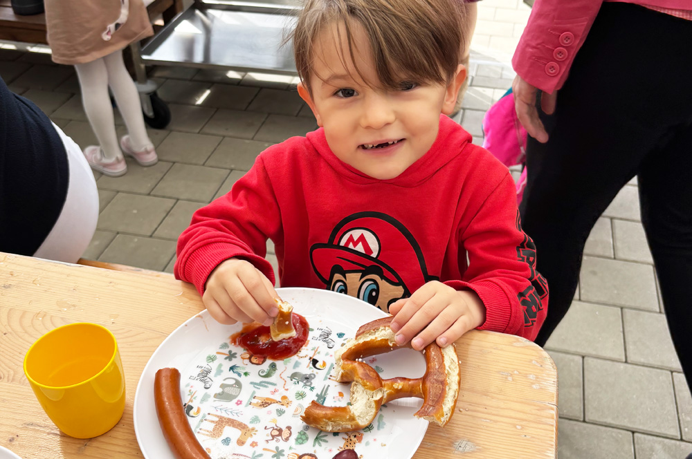 Etwas Besonderes war auch das anschließende gemeinsame Mittagessen. Im freundlichen Ambiente des HOLLER kamen die Kinder des Kindergartens und der HPT mit den anderen Feiernden noch einmal zusammen, um gemeinsam zu essen: Ein wunderbares und herzliches Miteinander aller Generationen!