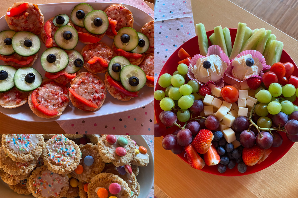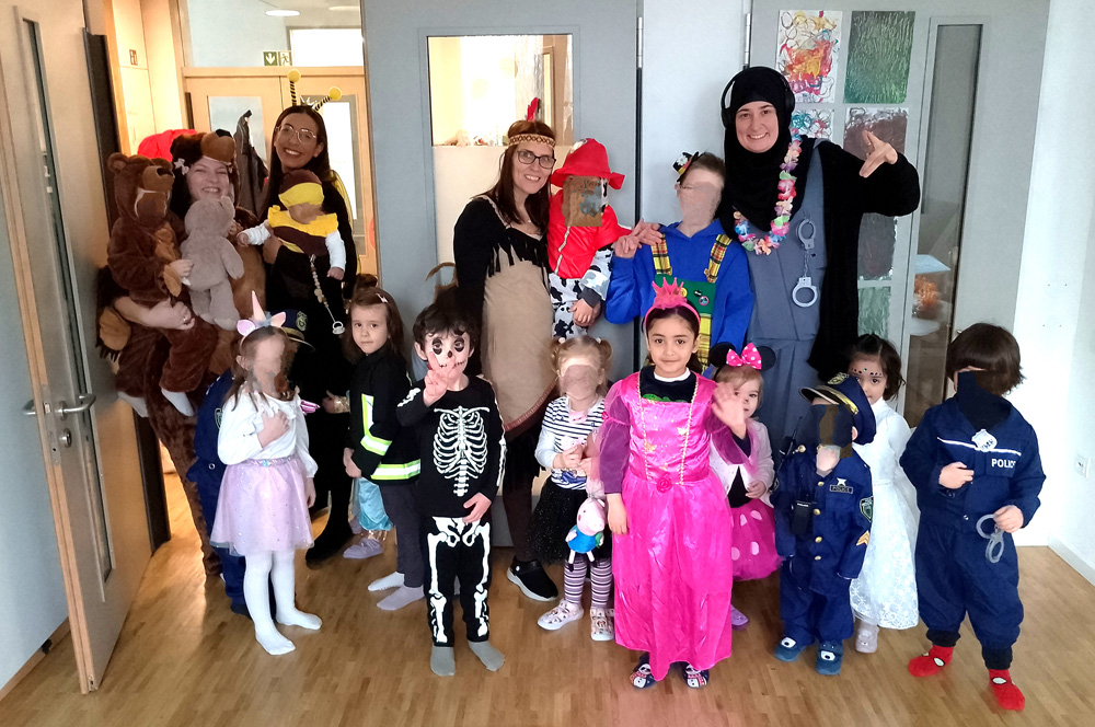 Neben einer Pyjamaparty gab's natürlich auch eine echt Faschingsparty: viele schöne Kostüme, Spaß, Tanz, Dosenwerfen, Schminkstation und leckeres Essen, das von den Eltern vorbereitet wurde.
