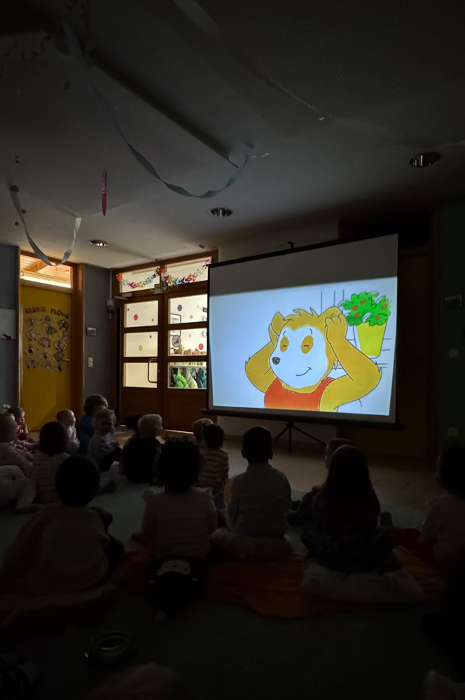 Danach gab es eine Überraschung für die Kinder: Das Team hat ein kleines Kino aufgebaut und die Kinder durften bei Popcorn eine Folge Bobo Siebenschläfer anschauen. Anschließend gab es eine Party mit Musik, Tanz, Luftschlangen und jede Menge Spaß!