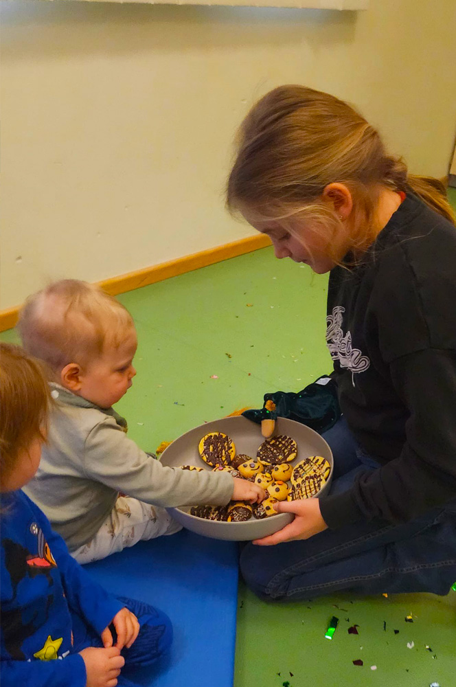 In der Krippe der Villa Kunterbunt gab es einen leckeren Brunch. Die Sonnenkäfer haben dafür extra gestern leckere Smarties-Kekse gebacken.