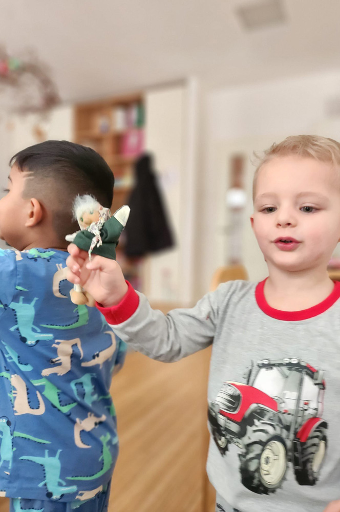 Im Anschluss durften die Kinder mit kleinen Fingerpuppen ein eigenes Theaterstück ausprobieren. "Vielen Dank an unsere Familien für die wahnsinnig tolle Unterstützung bei der Aufführung und für die selbstgebackenen Leckereien!", so das Team der Kita Immergrün!
