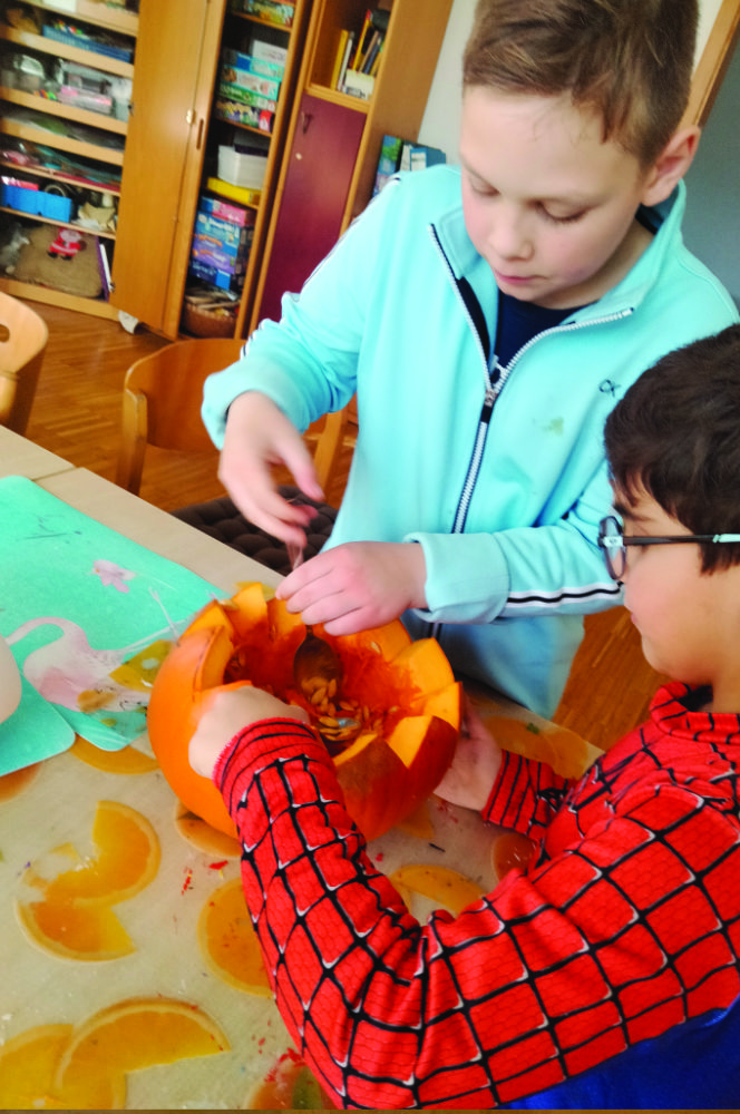 - Kürbis-Kunstwerke: Mit viel Eifer und Geschick haben die Kinder große und kleine Kürbisse in leuchtende Gesichter und fantastische Figuren verwandelt. Unsere Tagesstätte leuchtete dank dieser tollen Kreationen in einem ganz besonderen Licht.