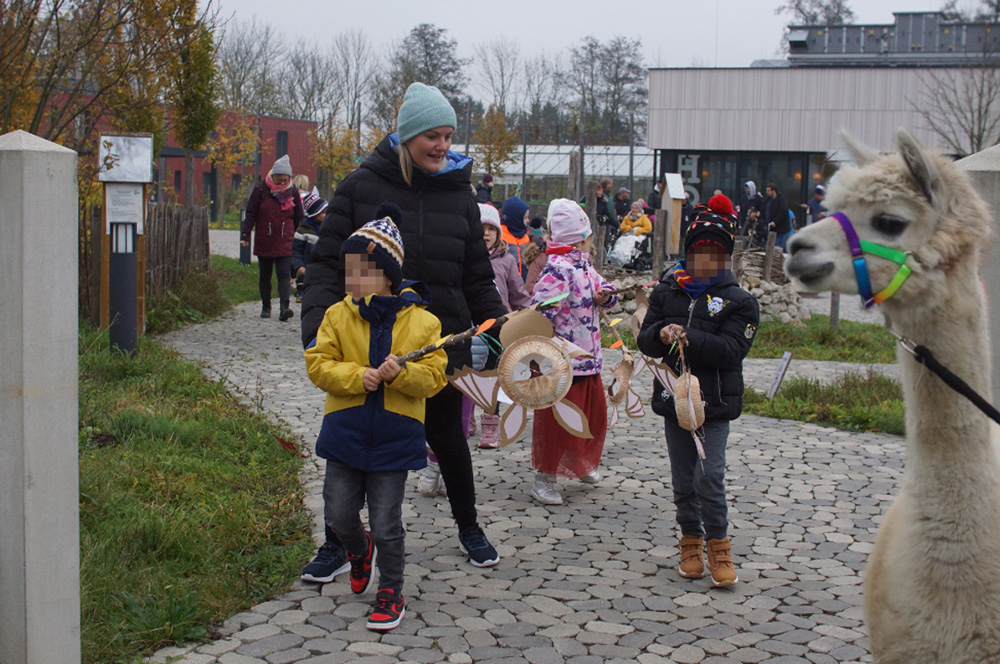 „Heute waren wir direkt froh über das graue Wetter“, resümiert Andrea Ostermeier, Leitung der Heilpädagogischen Tagesstätte Kleine Heimat, die unter Trägerschaft des Pädagogischen Zentrums Ingolstadt steht: „So kamen die Laternen unserer Kinder viel besser zur Geltung. Unser gemeinsames Ziel mit dem Hollerhof war es, einen inklusiven Martinsumzug mit der Nachbarschaft zu gestalten. Am Vormittag konnten die meisten dabei sein, also legten wir unseren Umzug auf den Martinstag-Vormittag.“