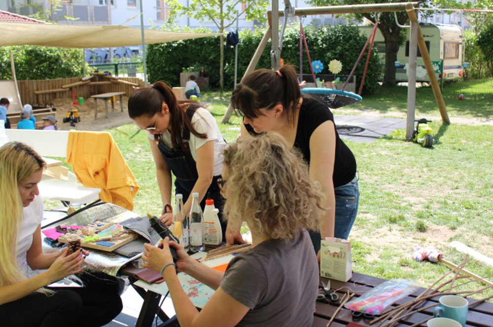 Unter anderem haben sich Kinderkrippe Grünschnabel und Kindergarten Blumenwiese dem „Upcycling“ gewidmet und aus alten Materialien und Resten, wie Stoffen, Wolle, Knöpfen, Filz und vielem mehr eine Sinnesdrehscheibe und eine sogenannte Fühlstraße gestaltet. Dabei engagierten sich auch die Eltern und Helfer am Audi Freiwilligentag.