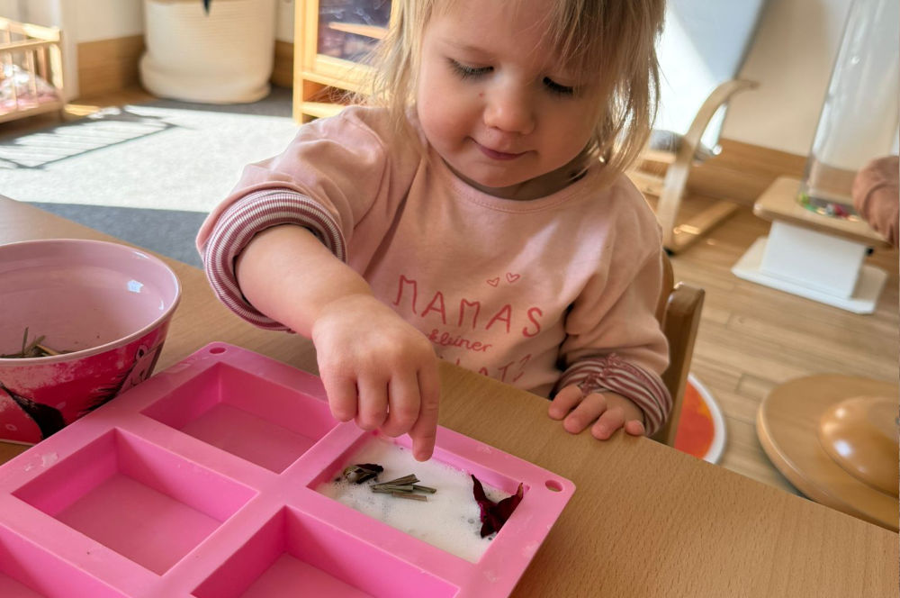 In der Kita immergrün zum Beispiel haben die Kinder ihr Osternest selbst gestaltet: Mit viel Begeisterung wurden die Nester angemalt und jedes ist ein Unikat geworden. Ein besonderes Highlight war das Herstellen von eigener Seife. Mit verschiedenen Blütenblättern konnten die Kinder ihre Seifen individuell gestalten und dabei spielerisch neue Erfahrungen sammeln.