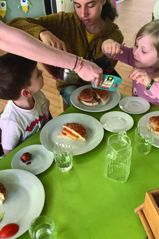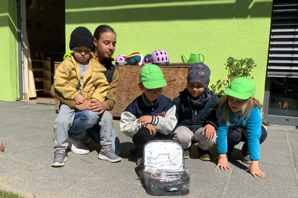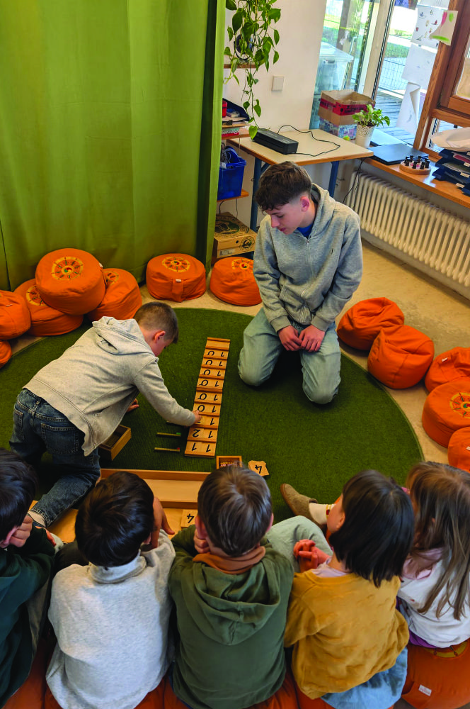 In der Kita Immergrün wurde die Theorie schnell zur Praxis. Gemeinsam mit den Kindern startete der Besuch ein physikalisches Experiment: Mit Alufolie präparierte Gefäße bündelten das Sonnenlicht so präzise, dass Schokolade darin schmolz. Es war ein Moment des gemeinsamen Staunens, der zeigte, wie Pädagogik Neugier weckt. Zeitgleich vertiefte sich im Integrationshort ein Schüler in die Welt der Montessori-Mathematik. Er erarbeitete mit den Kindern die Zahlenräume und erlebte dabei, wie logisches Denken und pädagogisches Feingefühl ineinandergreifen.