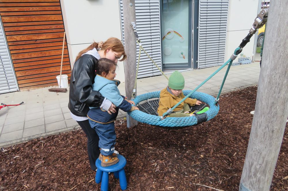Nach dieser kleinen Einführung ging es in Kleingruppen in verschiedene Kindertagesstätten am Standort, in denen die Schüler:innen in den Kita-Alltag schnuppern durften.