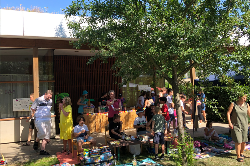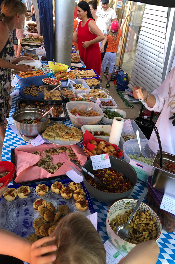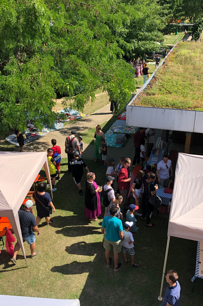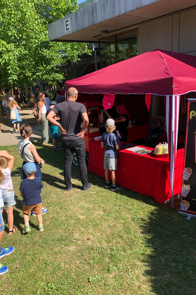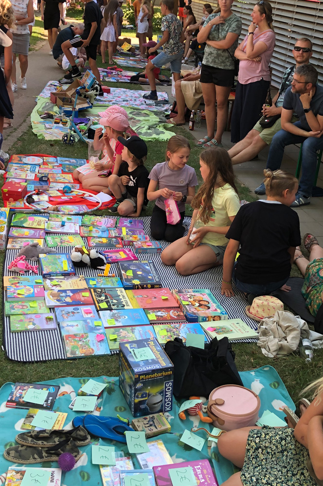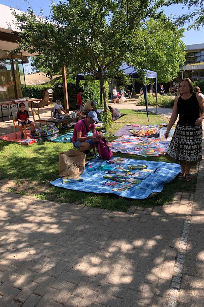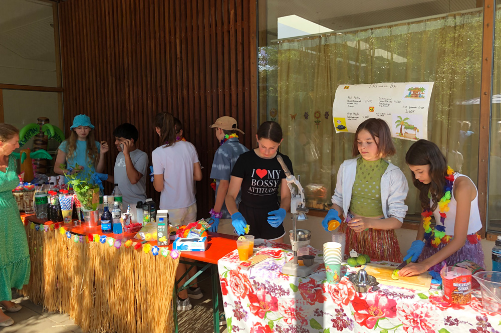 Für die Kinder gab es viele Angebote, wie zum Beispiel den Barfußpfad der Mittagsbetreuung, eine Edelstein-Suche des Horts oder die Kinder-Olympiade, die die Eltern der Lerngruppe Sonne organisiert hatten. Die Klasse 5/6b verkaufte Kräuter-Salze, während die Klassen 5 und 6 des Gymnasiums mit der vielversprechenden Station "Zauberbriefe" lockten. An der Spielstation Schach gewährte die Schach AG einen Einblick in ihre große Leidenschaft und MINT-Interessierte konnten im Rundbau Bekanntschaft mit Robotern machen.