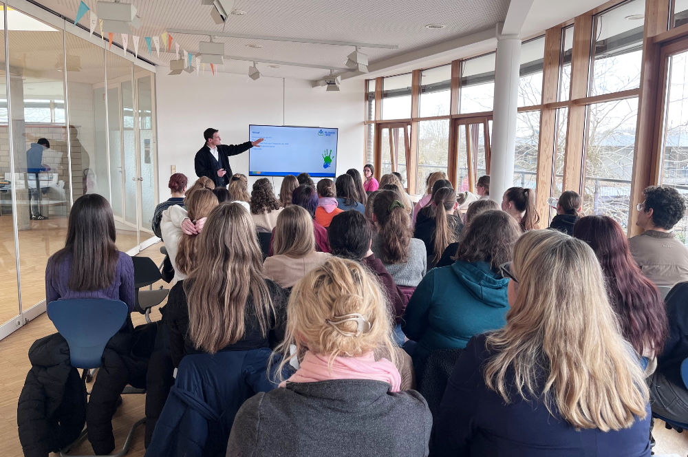 PZ-Geschäftsführer Philip Hockerts hieß die Gruppe willkommen und gab spannende Einblicke in die Arbeitswelt des Pädagogischen Zentrums. Besonders im Fokus stand dabei unser hauseigenes Therapeutenteam, das fachübergreifend in verschiedenen Einrichtungen tätig ist – ein echtes Herzstück unserer interdisziplinären Arbeit.